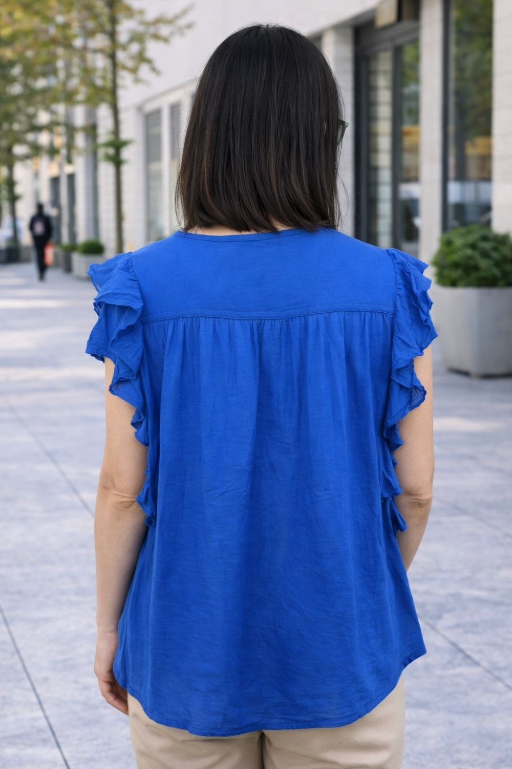 Bluzka Damska Niebieska Boho Falbanki Zwiewna M