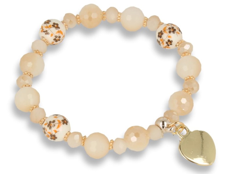 Bransoletka damska złota beżowa z zawieszką serduszkiem