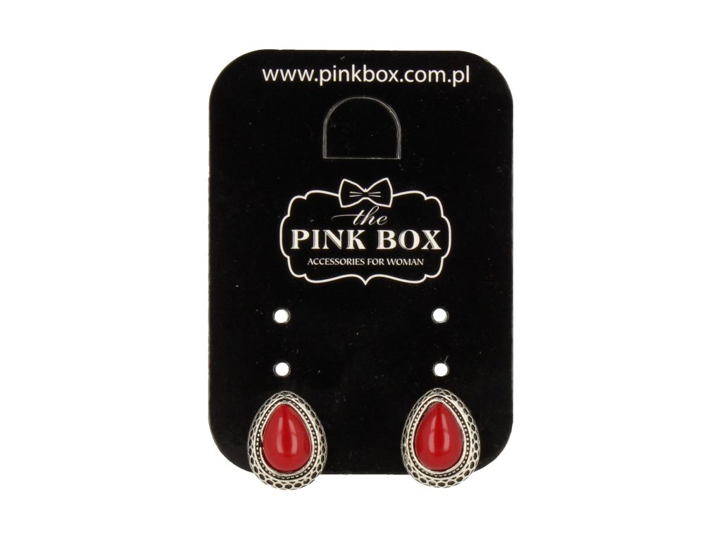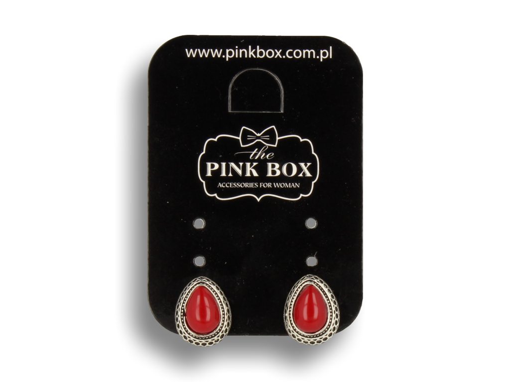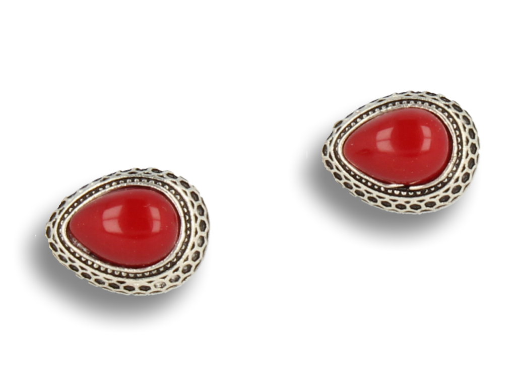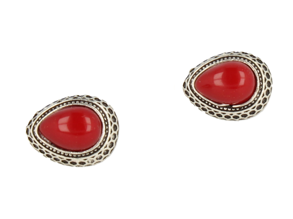 Klipsy do uszu srebrne w kształcie łezki z bordową perełką styl vintage