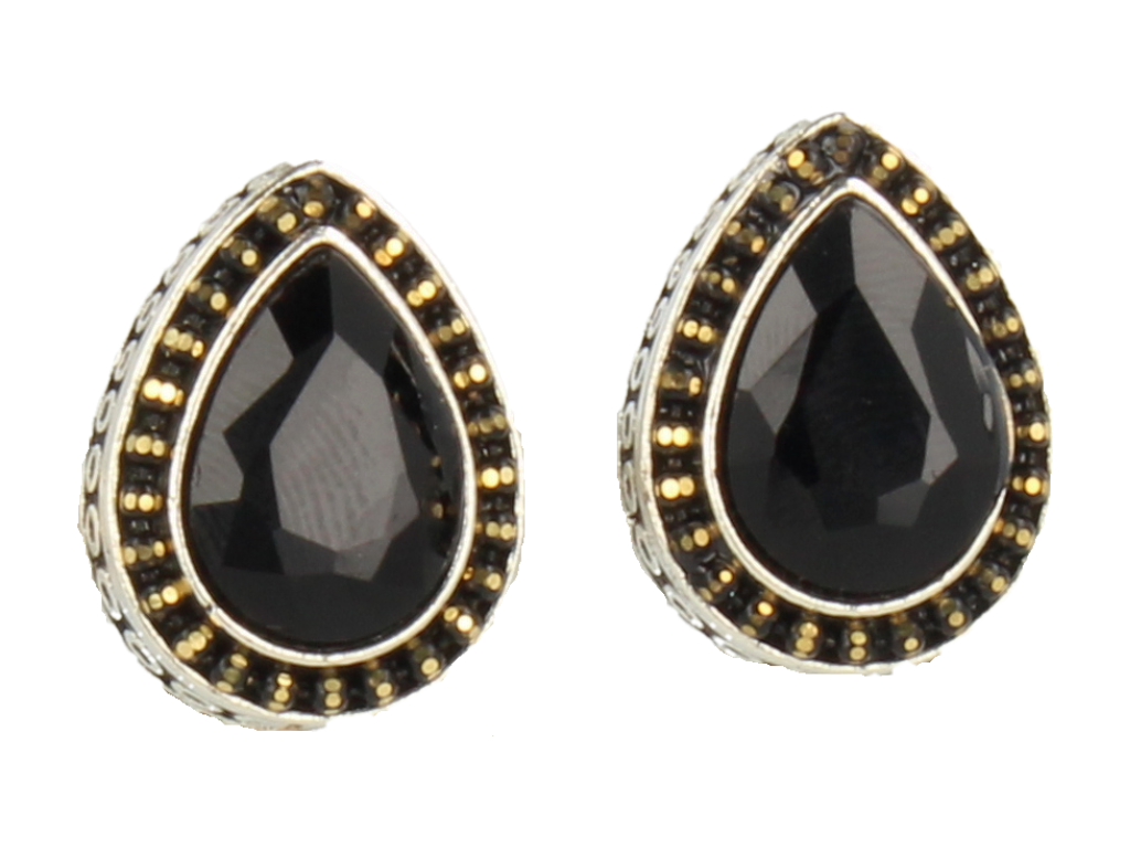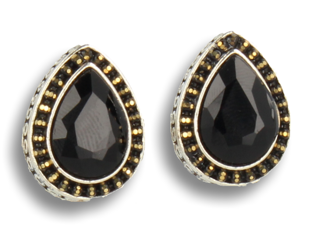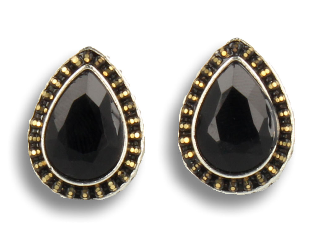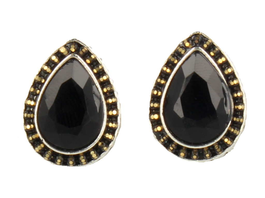 Klipsy do uszu srebrne w kształcie łezki z czarną perełką styl vintage