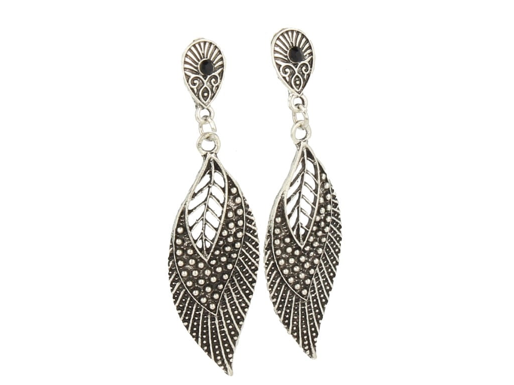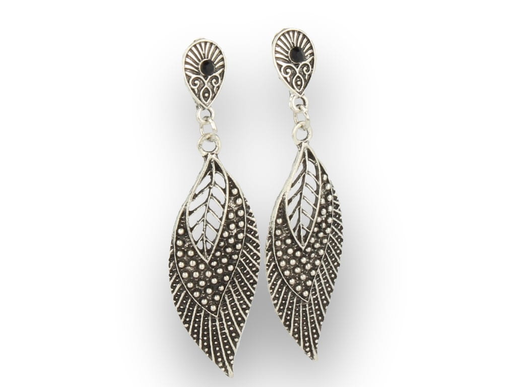 Klipsy do uszu srebrne wiszące z czarnym kryształkiem