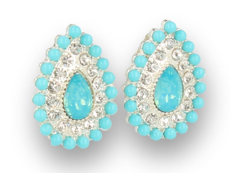 Klipsy do uszu srebrne z kryształkami błękitne