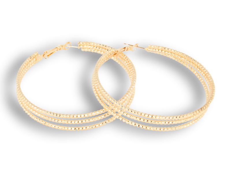 Eleganckie kolczyki w kształcie koła,karbowane, potrójne , duże, średnica około 5 cm