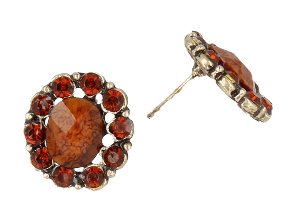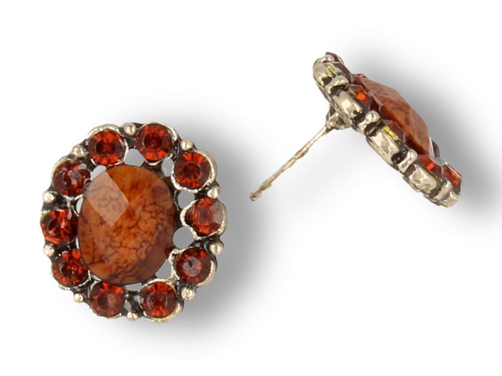 - Kolczyki okrągłe przyozdobione cyrkoniami i kamieniem w kolorze brązowym