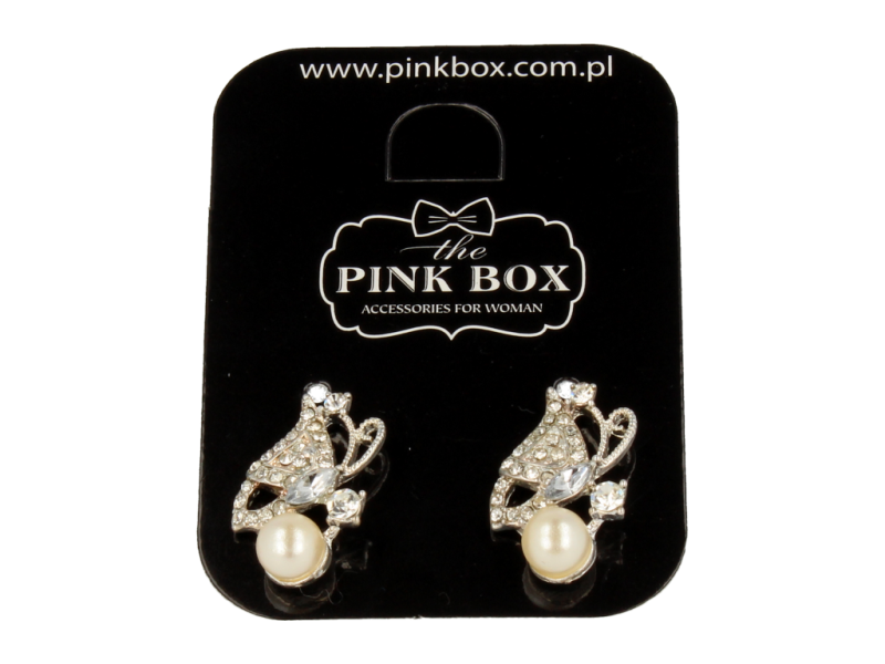 - Kolczyki złote pokryte cyrkoniami, przyozdobione kulką w kolorze perły