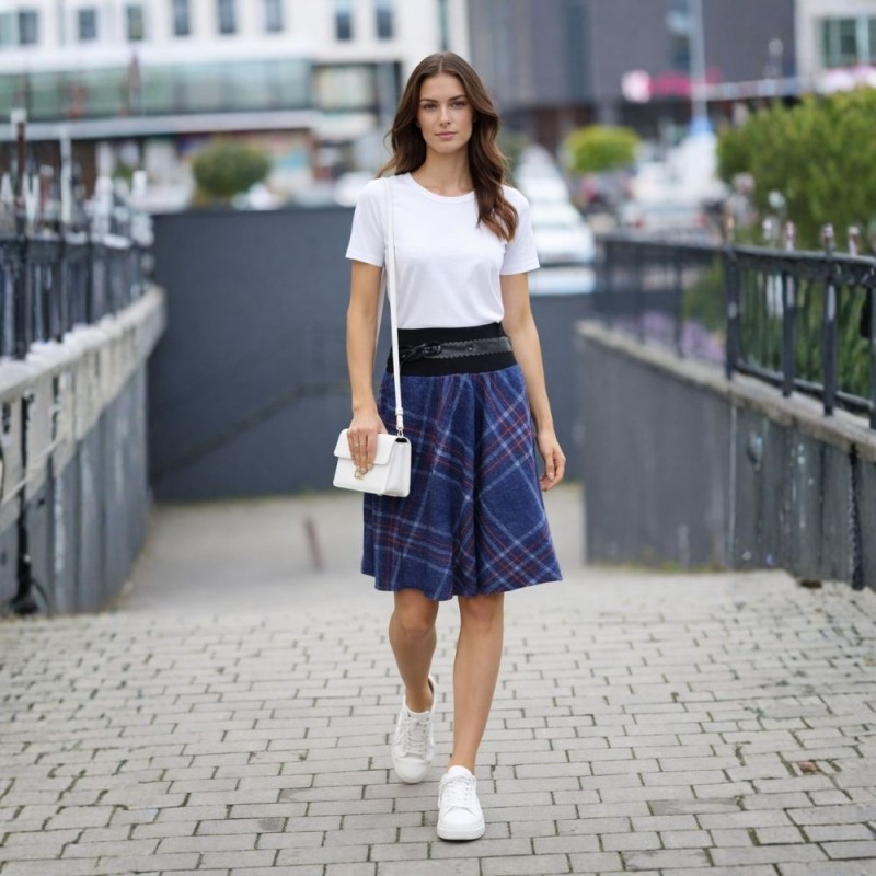 Odkryj spódnicę, która łączy klasyczną, jesienną kratę z nowoczesną wygodą. To nie tylko baza garderoby, ale funkcjonalny element stylizacji, stworzony dla kobiet poszukujących balansu między komfortem a wyrafinowanym stylem.