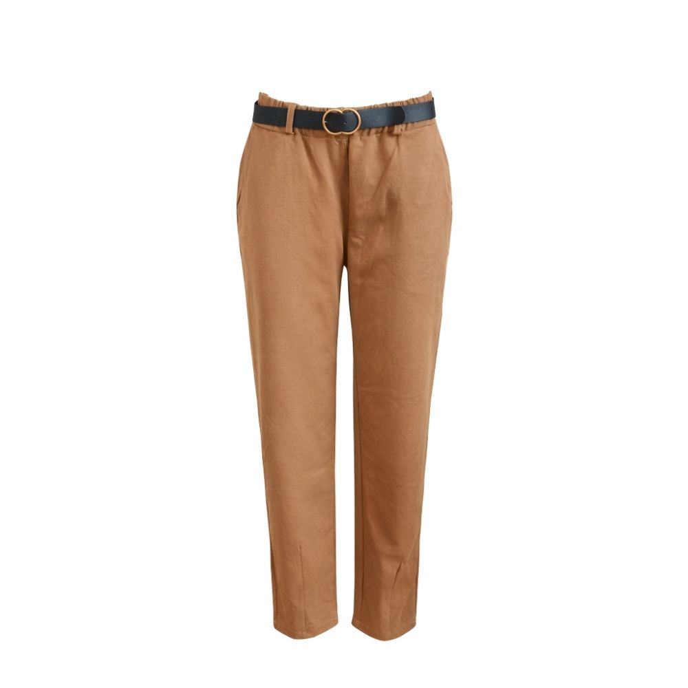 Spodnie Damskie Eleganckie z Paskiem Włoskie Brązowe