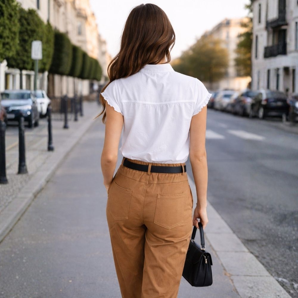 Odkryj spodnie, które redefiniują pojęcie codziennej klasyki w nowoczesnym wydaniu. To nie tylko uniwersalna baza garderoby, ale funkcjonalny element stylizacji, łączący swobodę kroju z eleganckim, miejskim sznytem. Stworzyliśmy je z myślą o kobietach, które poszukują balansu między komfortem a wyrafinowanym wyglądem, ceniąc detale podkreślające charakter stroju.