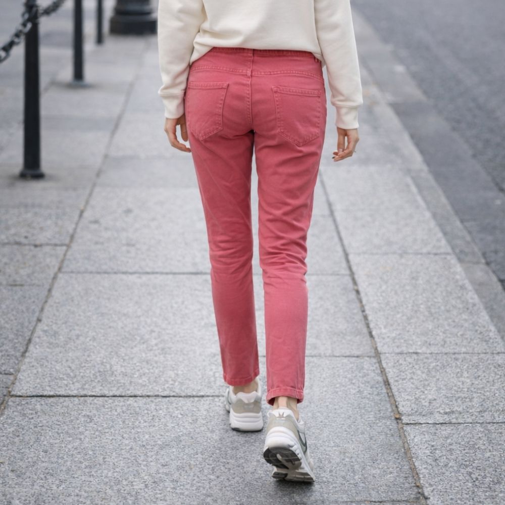 Spodnie Damskie Różowe Slim z Przeszyciami Casual S