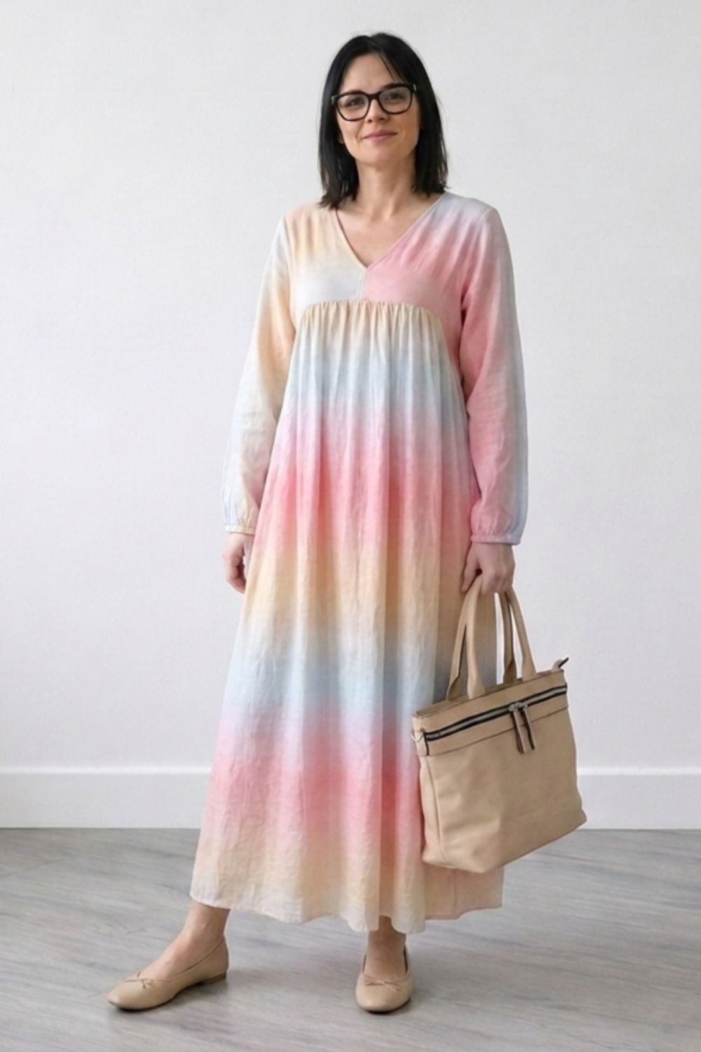 Sukienka Damska Maxi Ombre Pastelowa Bawełna Italy Luźna Oversize